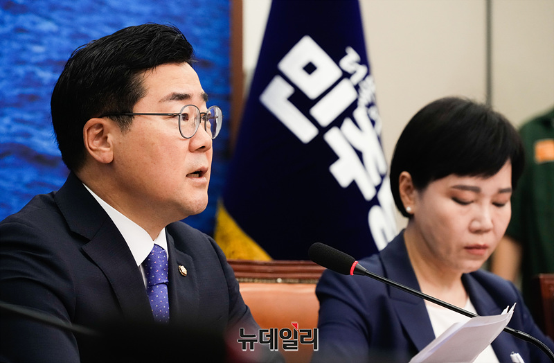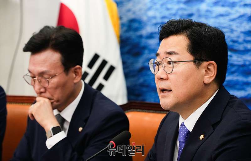 박찬대 더불어민주당 원내대표가 26일 오전 서울 여의도 국회에서 열린 최고위원회의에서 모두발언을 하고 있다.