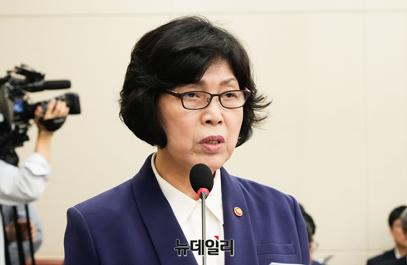 강정애 국가보훈부 장관이 26일 오전 서울 여의도 국회에서 열린 정무위원회에서 예산안 관련 제안설명을 하고 있다.