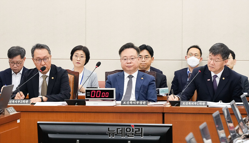 조규홍 보건복지부 장관이 26일 오전 서울 여의도 국회에서 열린 보건복지위원회 전체회의에 참석해 자리하고 있다.