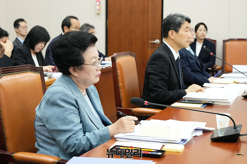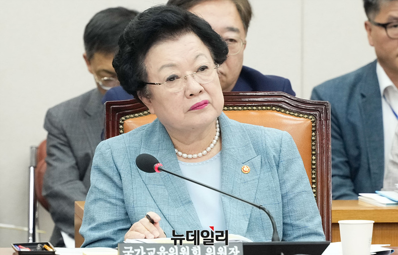 이배용 국가교육위원회 위원장이 26일 오전 서울 여의도 국회에서 열린 교육위원회 전체회의에 참석해 자리하고 있다.