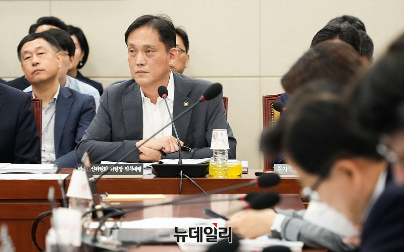 김태규 방송통신위원장 직무대행이 26일 오전 서울 여의도 국회에서 열린 과학기술정보방송통신위원회 전체회의에서 의원들의 질의에 답하고 있다.