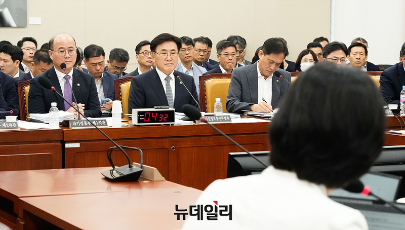 유상임 과학기술정보통신부 장관이 26일 오전 서울 여의도 국회에서 열린 과학기술정보방송통신위원회 전체회의에서 의원들의 질의에 답하고 있다.
