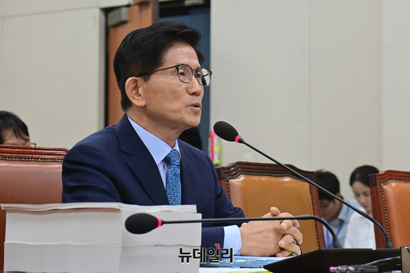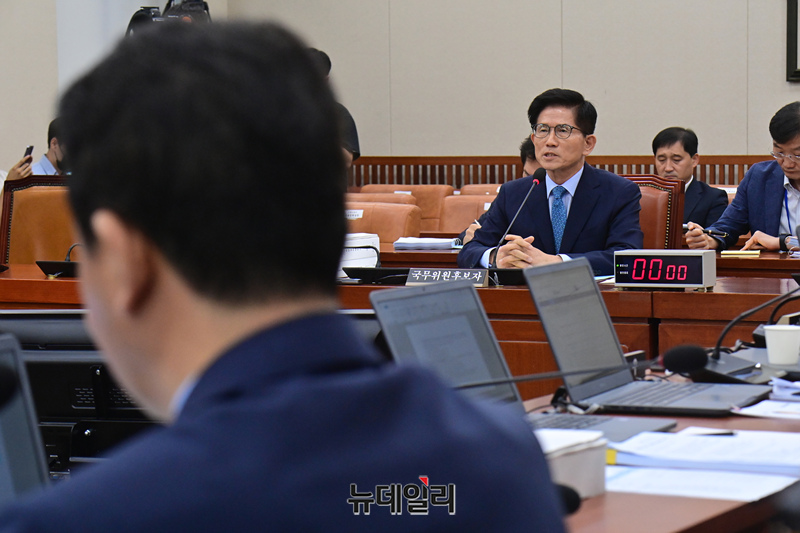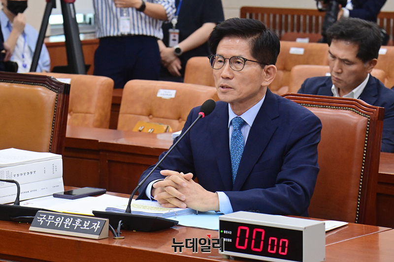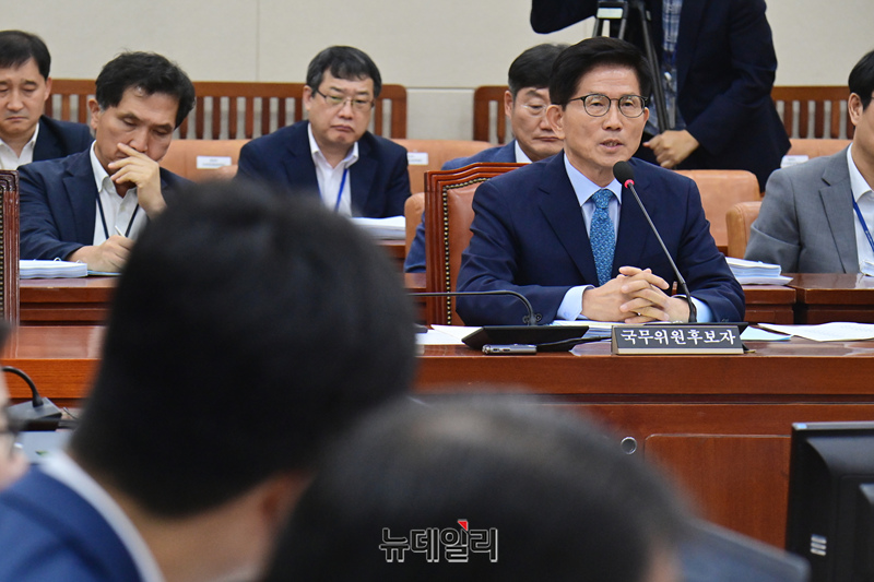 김문수 고용노동부 장관 후보자가 26일 오전 국회 환경노동위원회에서 열린 인사청문회에 출석해 의원들의 질문에 답하고 있다.