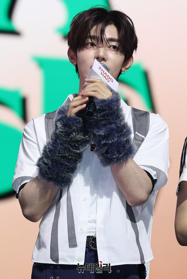 제로베이스원 장하오가 26일 오후 서울 용산구 블루스퀘어에서 열린 미니 4집 '시네마 파라다이스' 쇼케이스에서 포즈를 취하고 있다.