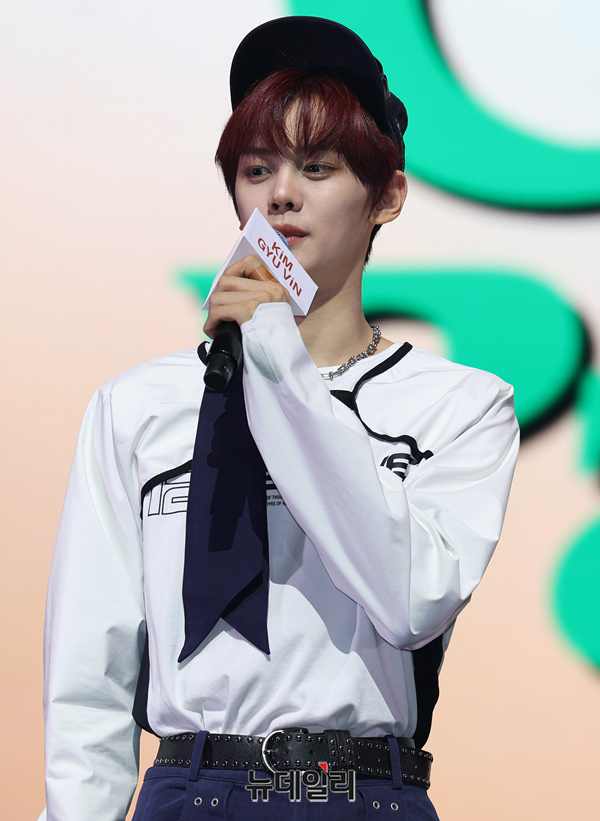 제로베이스원 김규빈이 26일 오후 서울 용산구 블루스퀘어에서 열린 미니 4집 '시네마 파라다이스' 쇼케이스에서 포즈를 취하고 있다.