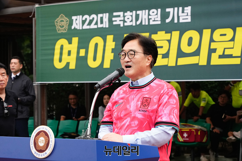 [포토] 여야 축구대회 축사하는 우원식 국회의장