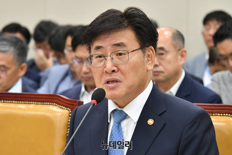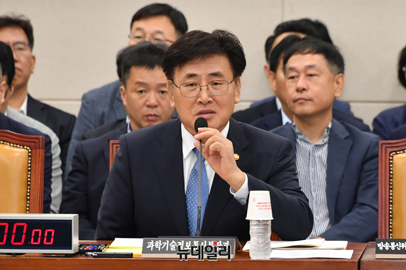 유상임 과학기술정보통신부 장관이 27일 오전 국회에서 열린 과학기술정보통신위원회 전체회의에서 의원들의 질문에 답하고 있다.
