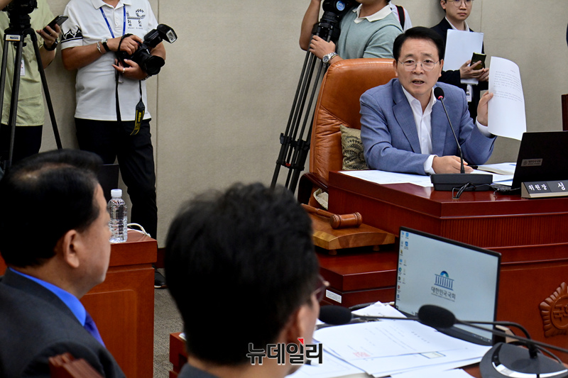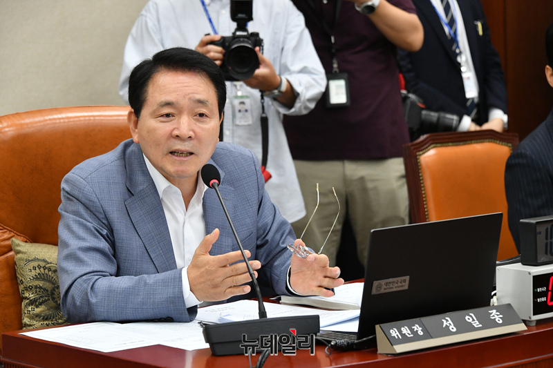 성일종 국방위원장이 27일 오전 국회에서 열린 국방위원회 전체회의에서 의사진행을 하고 있다.