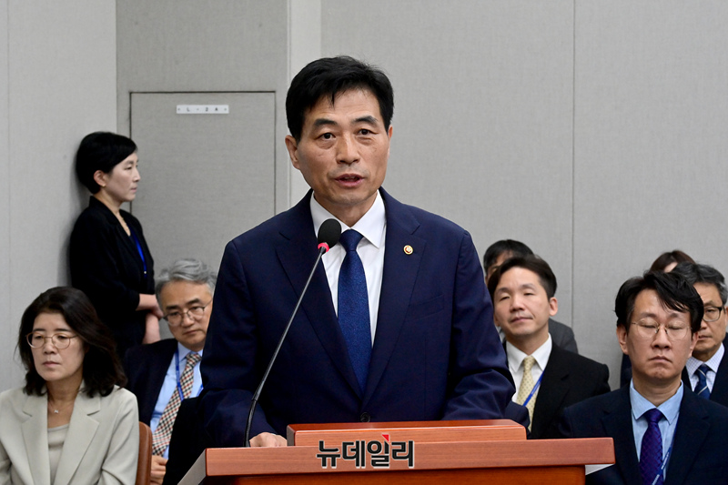 김민기 국회사무총장이 27일 오전 국회 운영위원회 전체회의에 출석해 업무보고를 하고 있다.