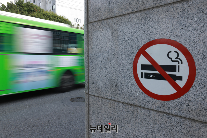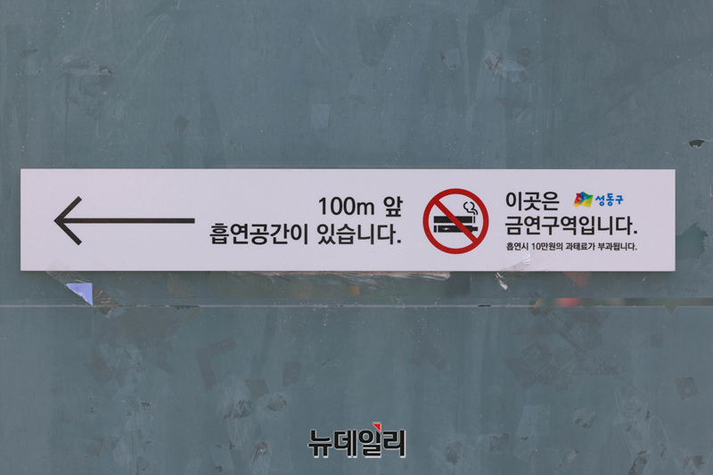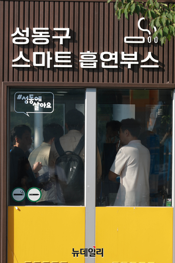 서울 성동구 스마트 흡연부스에 분리형(일반담배, 전자담배 구분) 흡연 안내 픽토그램이 부착돼 있다. 보건복지부는 지난 17일부터 어린이집, 유치원, 초·중·고교 경계 30m 이내까지(기존 10m이내) 금연구역으로 지정하고, 이 구역에서 흡연하면 10만 원 이하의 과태료를 부과한다고 밝혔다.
