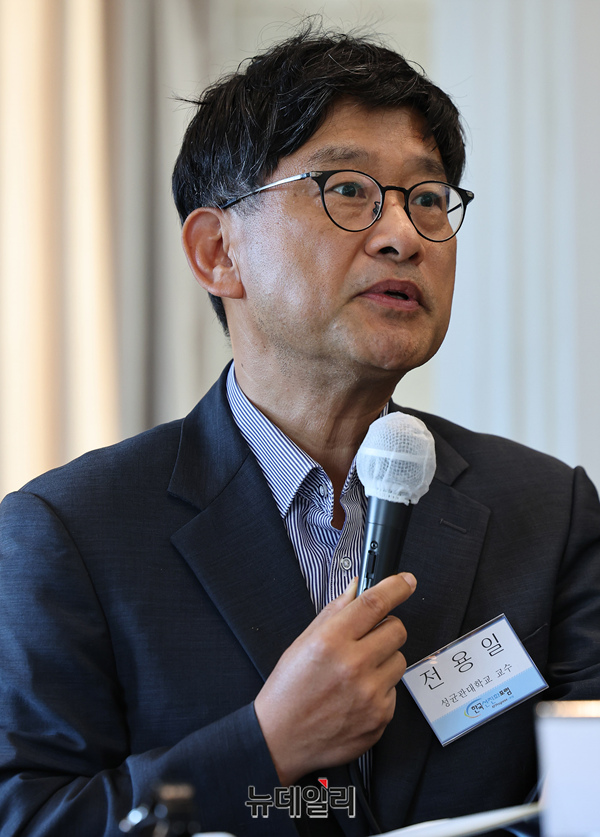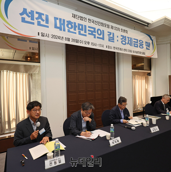 전용일 성균관대 교수가 28일 오후 서울 중구 한국프레스센터에서 열린 한국선진화포럼 제123차 월례토론회에서 토론을 하고 있다.
