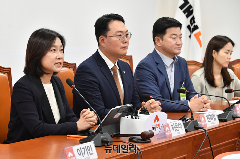 허은아 개혁신당 대표가 29일 오전 국회에서 열린 최고위원회의에서 모두발언을 하고 있다.