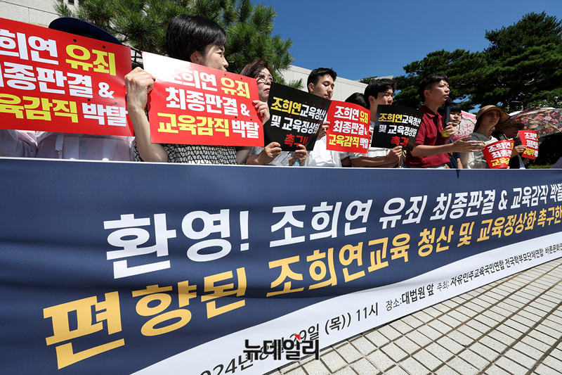 [포토] 교육시민단체, 조희연 교육감직 상실 판결 환영