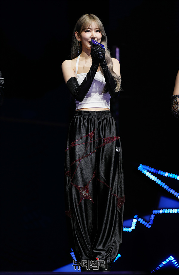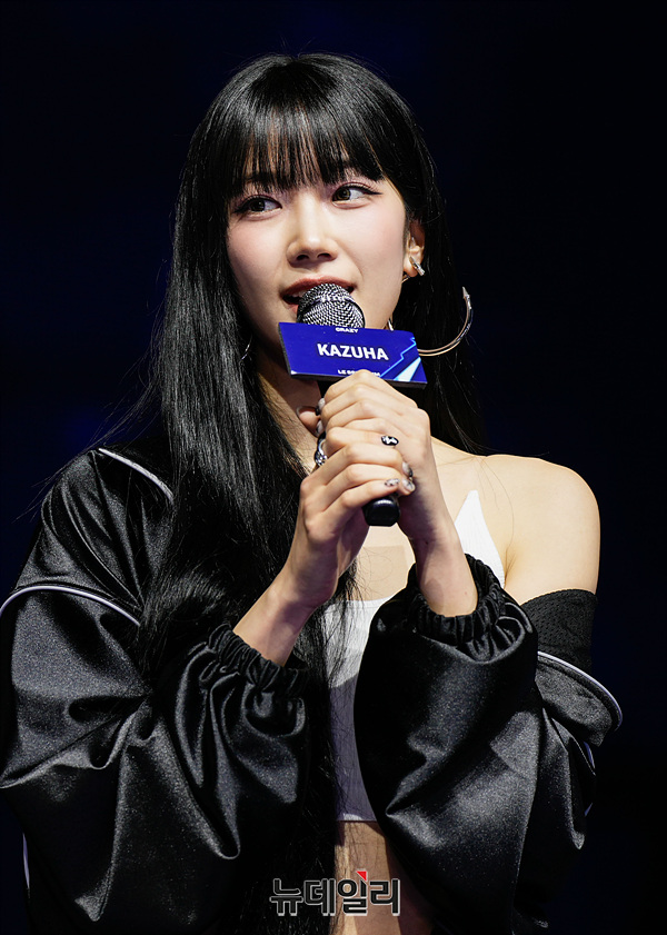 걸그룹 르세라핌이 29일 오후 서울 광진구 예스24 라이브홀에서 열린 네 번째 미니앨범 '크레이지(CRAZY)' 발매 기념 쇼케이스에서 컴백 소감을 밝히고 있다.