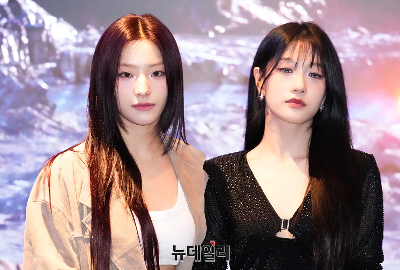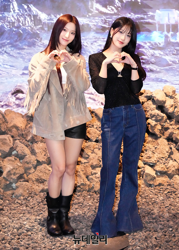 그룹 프로미스 나인 이새롬과 이서연이 30일 오후 서울 강남구에 마련된 체험형 플래그십 스토어 '스페이스 도산' 오픈 기념 포토월에서 포즈를 취하고 있다.