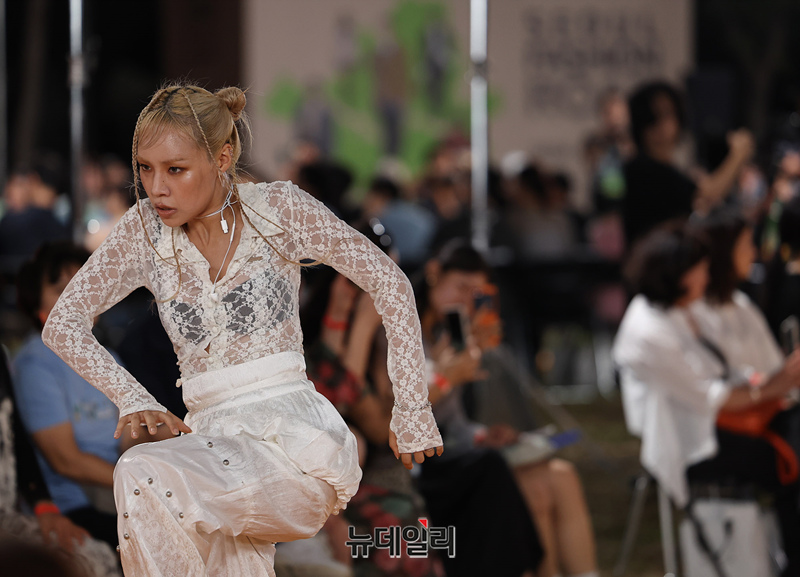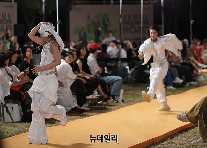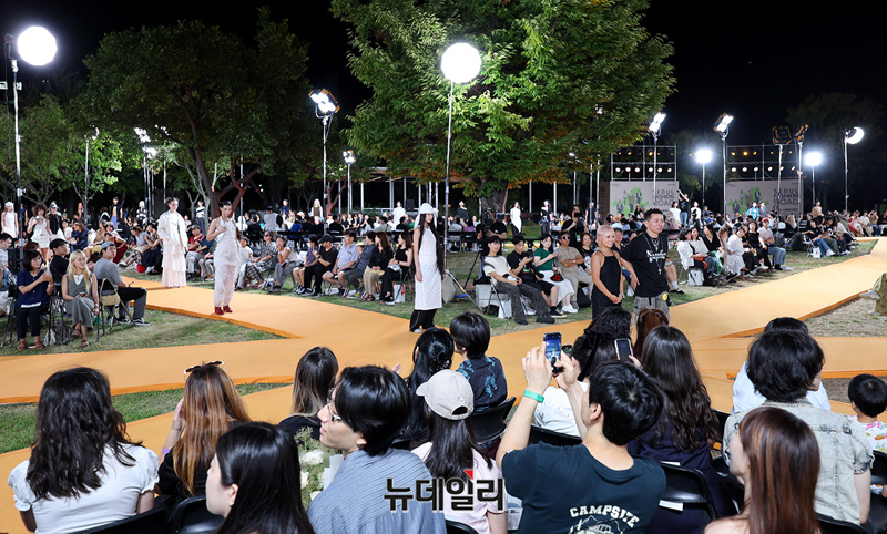 최경호 송현희 디자이너의 홀리넘버세븐이 30일 오후 서울 광진구 뚝섬한강공원에서 열린 '2024 서울패션로드@뚝섬-보타닉패션쇼'에서 런웨이 무대를 선보이고 있다.'2024 서울패션로드@뚝섬-보타닉패션쇼'는 서울의 매력적인 장소와 K-패션 브랜드를 동시에 알리고자 서울시가 마련한 올해 2번째 행사다. 지난 5월 송파구 석촌호수 산책로에서 첫 번째 서울패션로드가 진행됐다.이날 보타닉패션쇼는 '지속 가능한 패션'을 주제로 △비스퍽(김보나, 임재혁) △비건타이거(양윤아) △홀리넘버세븐(최경호, 송현희) 등 디자이너와 모델 90명이 참여한다.