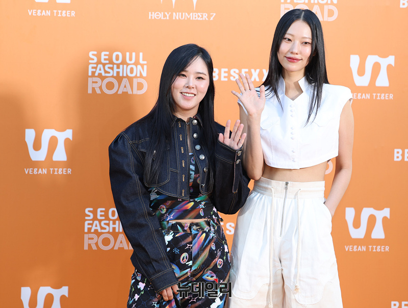 박희정, 조윤지가 30일 오후 서울 광진구 뚝섬한강공원에서 열린 '2024 서울패션로드@뚝섬-보타닉패션쇼' 포토월 행사에 참석해 포즈를 취하고 있다.'2024 서울패션로드@뚝섬-보타닉패션쇼'는 서울의 매력적인 장소와 K-패션 브랜드를 동시에 알리고자 서울시가 마련한 올해 2번째 행사다. 지난 5월 송파구 석촌호수 산책로에서 첫 번째 서울패션로드가 진행됐다.이날 보타닉패션쇼는 '지속 가능한 패션'을 주제로 △비스퍽(김보나 임재혁) △비건타이거(양윤아) △홀리넘버세븐(최경호 송현희) 등 디자이너와 모델 90명이 참여했다.