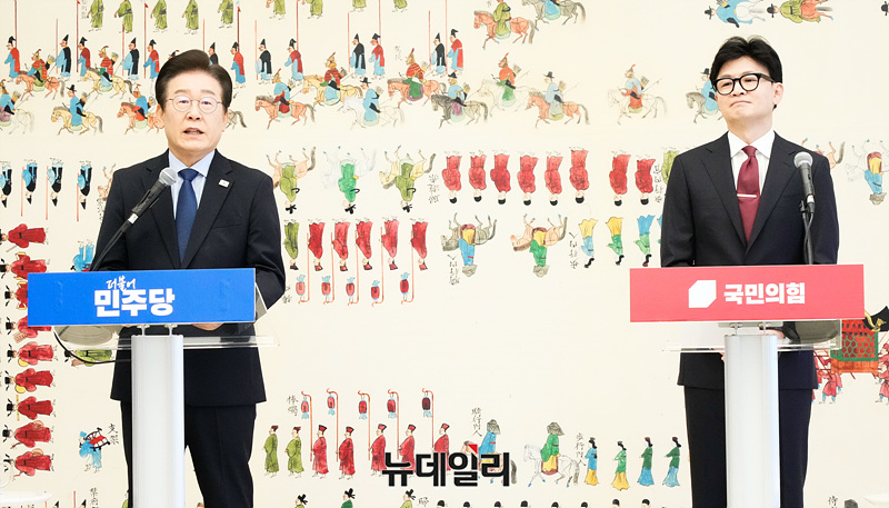 이재명 더불어민주당 대표가 1일 오후 서울 여의도 국회에서 열린 '국민의힘-더불어민주당 당대표 회담'에서 모두발언을 하고 있다.