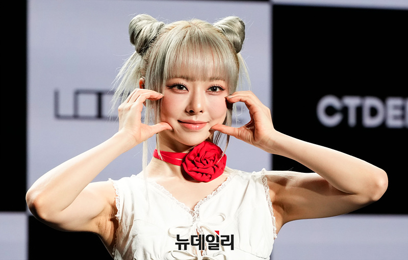 걸그룹 루셈블 비비가 2일 오후 서울 강남구 일지아트홀에서 열린 세 번째 미니앨범 'TTYL(티티와이엘)' 발매 기념 쇼케이스에서 포즈를 취하고 있다.