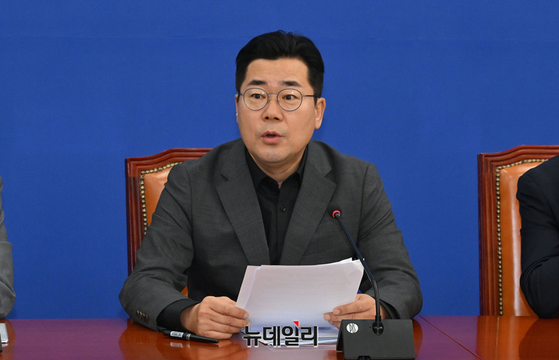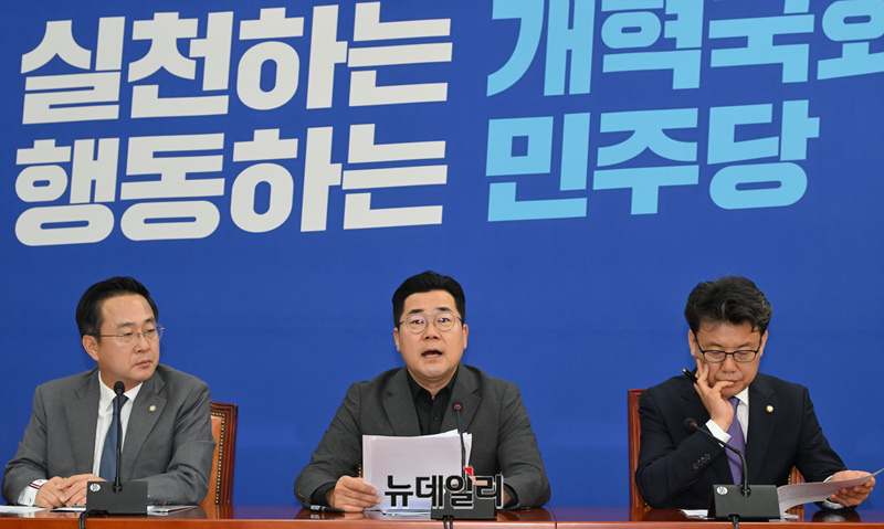 박찬대 더불어민주당 원내대표가 3일 오전 국회에서 열린 원내대책회의에서 모두발언을 하고 있다.