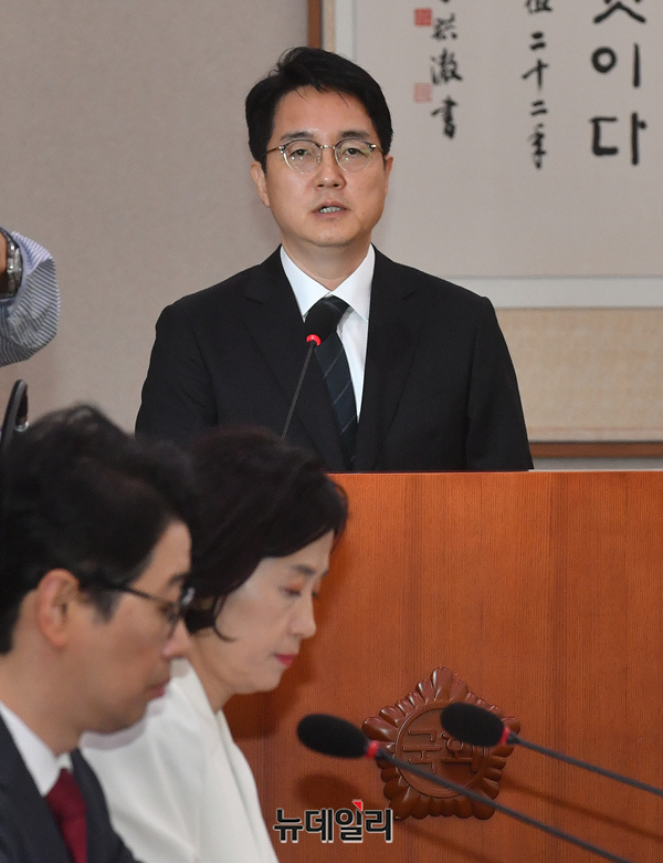 심우정 검찰총장 후보자가 3일 오전 국회 법제사법위원회에서 열린 인사청문회에서 인사말을 하고 있다.