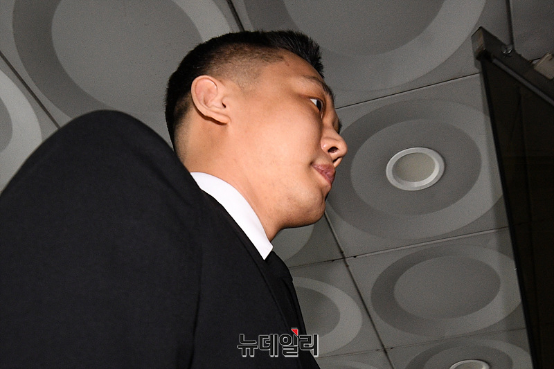 프로포폴 등 의료용 마약류를 상습 투약한 혐의를 받는 배우 유아인(본명 엄홍식)이 3일 오후 서울 서초구 서울중앙지법에서 열린 1심 선고공판에 출석하고 있다.