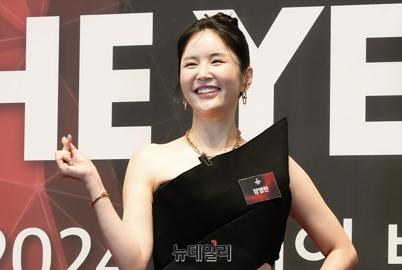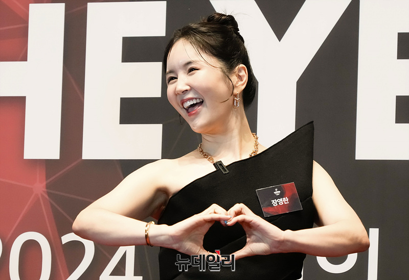 배우 장영란이 3일 오후 서울 중구 신라호텔에서 열린 '2024 올해의 브랜드 대상' 시상식에서 포즈를 취하고 있다.