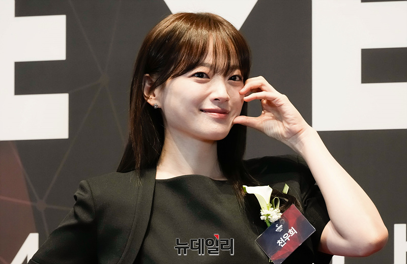 배우 천우희가 3일 오후 서울 중구 신라호텔에서 열린 '2024 올해의 브랜드 대상' 시상식에서 포즈를 취하고 있다.