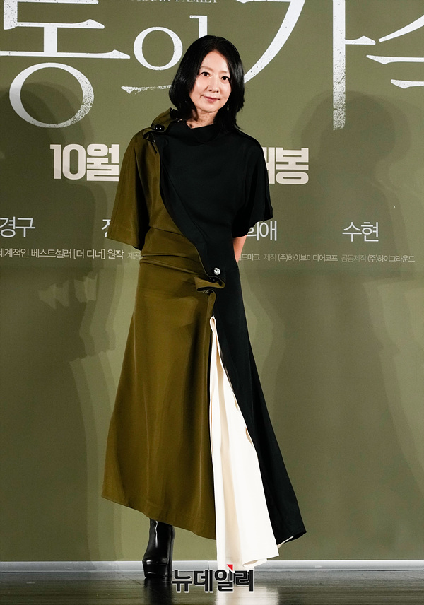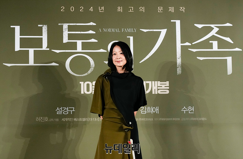 배우 김희애가 4일 오전 서울 광진구 롯데시네마 건대입구에서 열린 영화 '보통의 가족(감독 허진호)' 제작보고회에서 포즈를 취하고 있다.