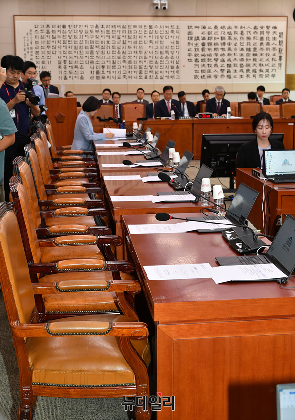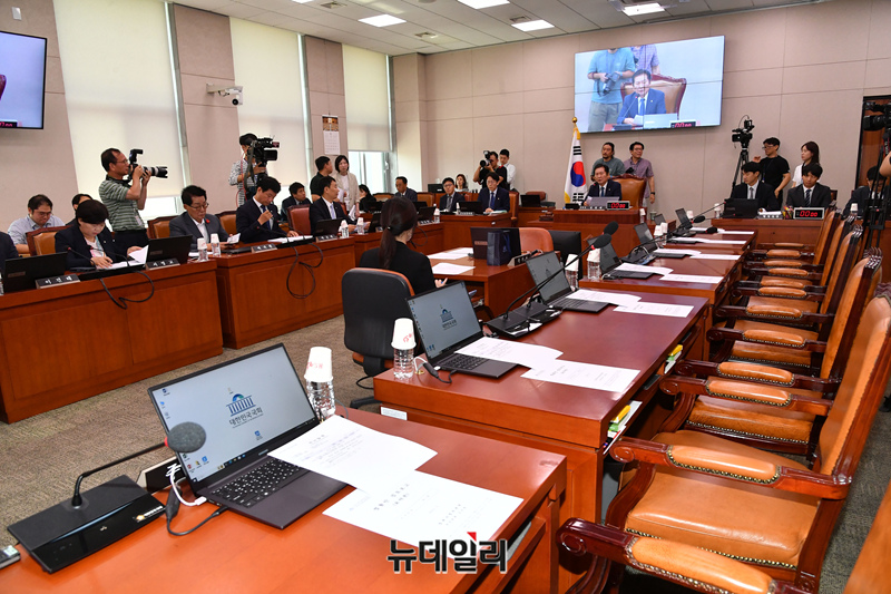 법제사법위원회가 4일 국회에서 순직해병 특검법 상정에 반발한 국민의힘 의원들이 불참한 가운데 열리고 있다.