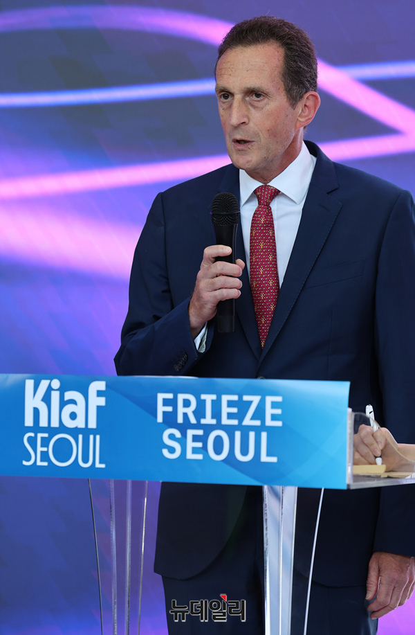 사이먼 폭스 프리즈 CEO가 4일 오전 서울 강남구 코엑스에서 열린 키아프 서울·프리즈 서울 2024 개막식에서 인사말을 하고 있다. 프리즈 서울은 7일까지, 키아프 서울은 8일까지 각각 진행된다.