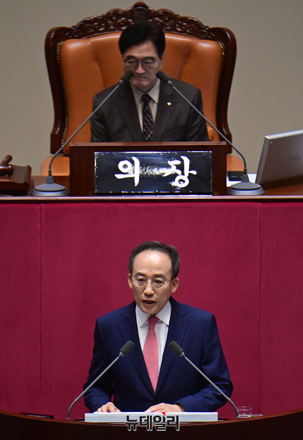[포토] 교섭단체 대표연설 하는 추경호 국민의힘 원내대표