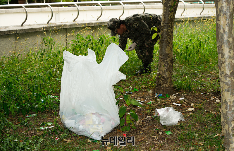 [포토] '북한 오물풍선' 잔해 수거하는 군 관계자들