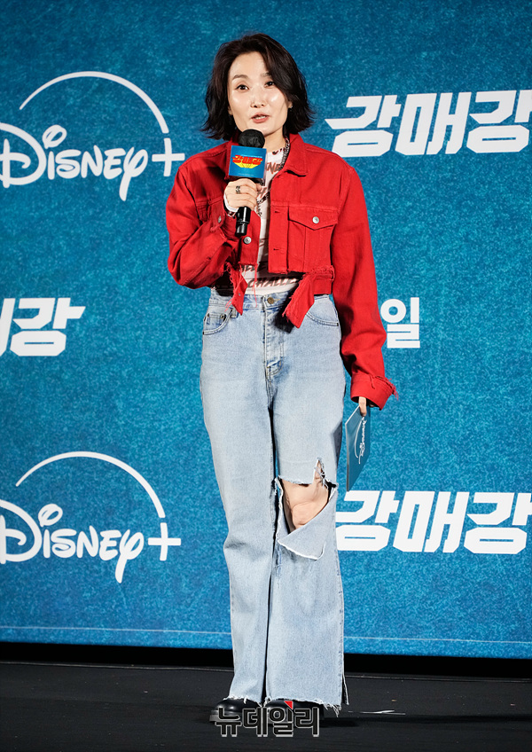 MC 박경림이 5일 오전 서울 구로구 라마다 신도림 호텔에서 열린 디즈니+ 시리즈 '강매강(연출 안종연)' 제작발표회에서 배우들을 소개하고 있다.