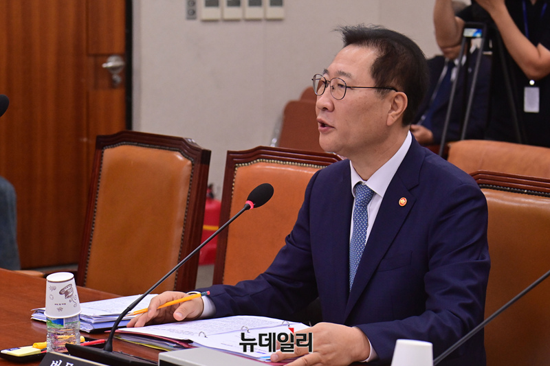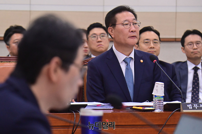 박성재 법무부 장관이 5일 오전 국회에서 열린 법제사법위원회 3차 전체회의에서 의원 질의에 답하고 있다.