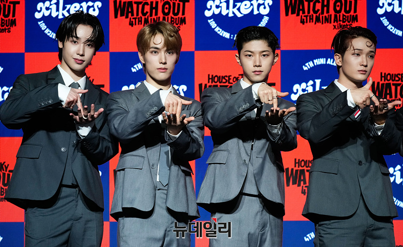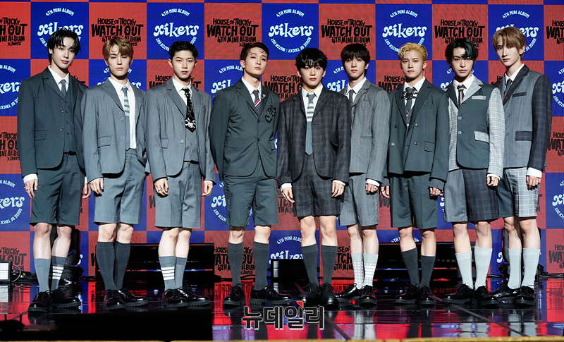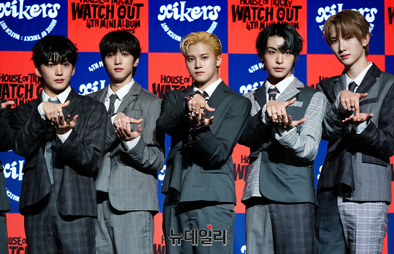 그룹 싸이커스(xikers)가 5일 오후 서울 마포구 신한카드 SOL페이 스퀘어에서 열린 미니4집 '하우스 오브 트리키 : 워치 아웃(HOUSE OF TRICKY : WATCH OUT)' 발매 기념 쇼케이스에서 포즈를 취하고 있다.이번 앨범은 타이틀곡 '위치'를 비롯해 '워치 아웃(WATCH OUT)' '백 오프(BACK OFF)' '비터스위트(Bittersweet)' '샌드캐슬(Sandcastle)' '행 어라운드(Hang Around)'까지 여섯 곡을 담았다. 음원은 6일 오후 1시 공개.