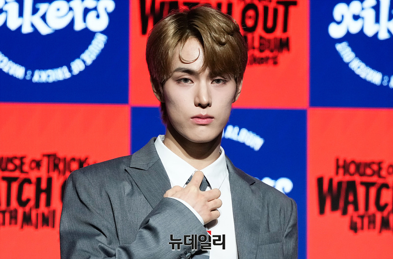그룹 싸이커스(xikers) 진식이 5일 오후 서울 마포구 신한카드 SOL페이 스퀘어에서 열린 미니4집 '하우스 오브 트리키 : 워치 아웃(HOUSE OF TRICKY : WATCH OUT)' 발매 기념 쇼케이스에서 포즈를 취하고 있다.이번 앨범은 타이틀곡 '위치'를 비롯해 '워치 아웃(WATCH OUT)' '백 오프(BACK OFF)' '비터스위트(Bittersweet)' '샌드캐슬(Sandcastle)' '행 어라운드(Hang Around)'까지 여섯 곡을 담았다. 음원은 6일 오후 1시 공개.
