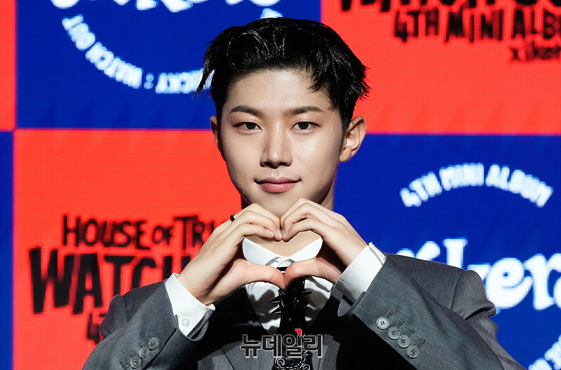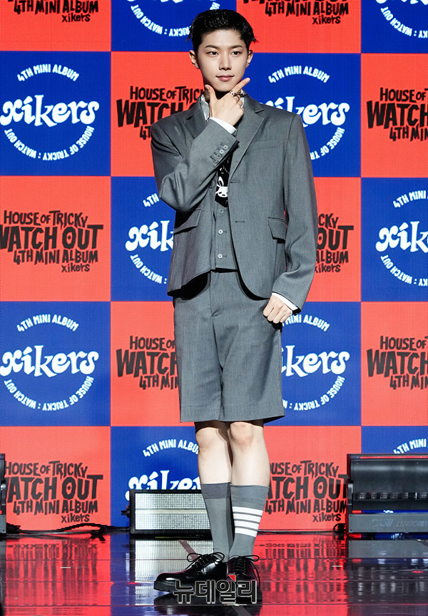 그룹 싸이커스(xikers) 현우가 5일 오후 서울 마포구 신한카드 SOL페이 스퀘어에서 열린 미니4집 '하우스 오브 트리키 : 워치 아웃(HOUSE OF TRICKY : WATCH OUT)' 발매 기념 쇼케이스에서 포즈를 취하고 있다.이번 앨범은 타이틀곡 '위치'를 비롯해 '워치 아웃(WATCH OUT)' '백 오프(BACK OFF)' '비터스위트(Bittersweet)' '샌드캐슬(Sandcastle)' '행 어라운드(Hang Around)'까지 여섯 곡을 담았다. 음원은 6일 오후 1시 공개.
