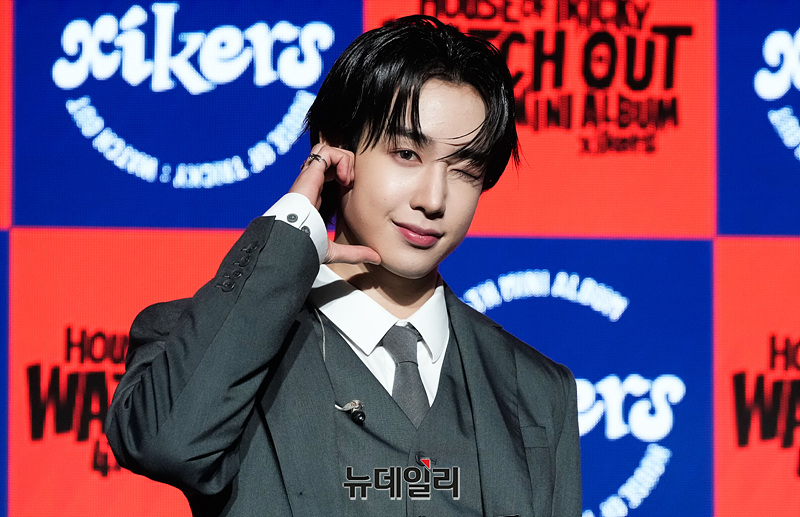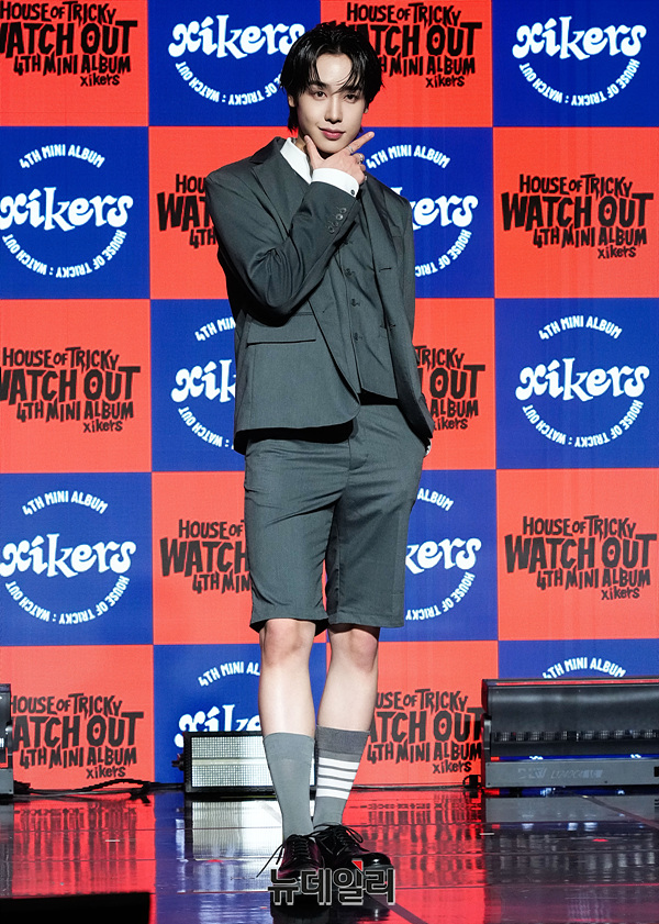그룹 싸이커스(xikers) 헌터가 5일 오후 서울 마포구 신한카드 SOL페이 스퀘어에서 열린 미니4집 '하우스 오브 트리키 : 워치 아웃(HOUSE OF TRICKY : WATCH OUT)' 발매 기념 쇼케이스에서 포즈를 취하고 있다.이번 앨범은 타이틀곡 '위치'를 비롯해 '워치 아웃(WATCH OUT)' '백 오프(BACK OFF)' '비터스위트(Bittersweet)' '샌드캐슬(Sandcastle)' '행 어라운드(Hang Around)'까지 여섯 곡을 담았다. 음원은 6일 오후 1시 공개.