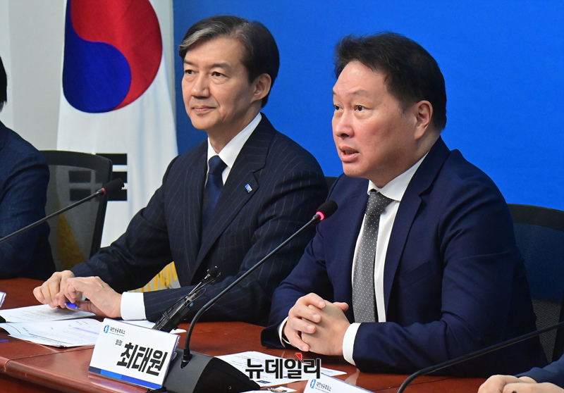 [포토] 조국혁신당 예방한 최태원 대한상의회장