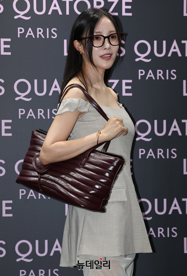 가수 효민이 5일 오후 서울 강남구 루이까또즈 산하 문화재단 '플랫폼엘 컨템포러리 아트센터'에서 열린 현대 미술가 '토비아스 레베르거(Tobias Rehberger)' 개인전 '천둥이라 불러줘' 기념 행사에 참석해 포즈를 취하고 있다. 패션 브랜드 루이까또즈는 토비아스 레베르거와 협업한 콜라보레이션 에디션을 선보였다.