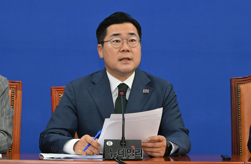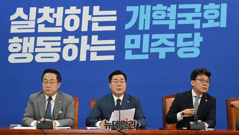 박찬대 더불어민주당 원내대표가 10일 오전 국회에서 열린 원내대책회의에서 모두발언을 하고 있다.
