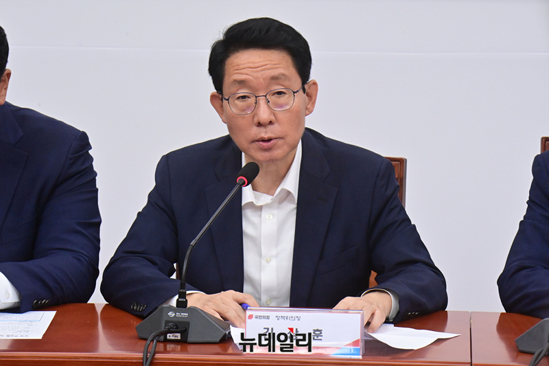 김상훈 국민의힘 정책위의장이 10일 국회에서 열린 '추석 성수품 수급 점검 및 수확기 쌀값·한우 가격 안정 대책 민당정 협의회'에서 발언을 하고 있다.