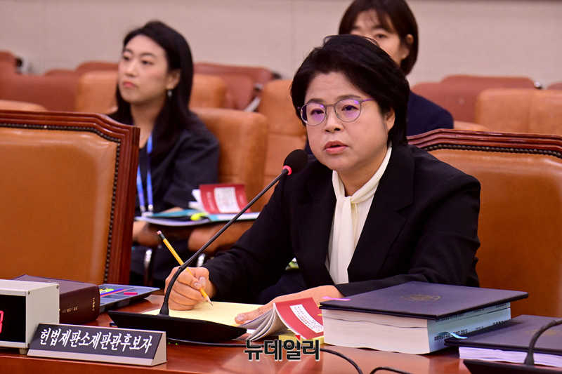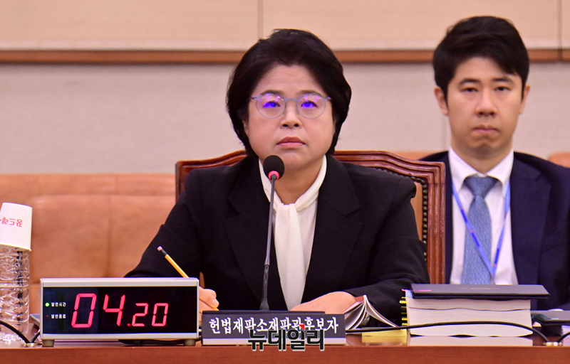 김복형 헌법재판소 재판관 후보자가 10일 오전 국회 법제사법위원회에서 열린 인사청문회에 출석해 의원들의 질문에 답하고 있다.