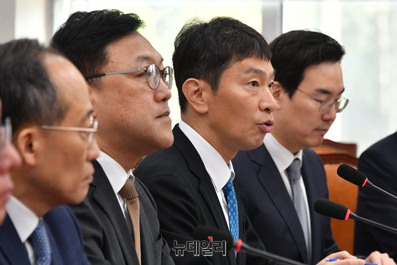 이복현 금융감독원장이 11일 오전 국회에서 열린 금융 취약계층 보호 및 불법 사금융 근절 대책 당정협의회에서 모두발언을 하고 있다.