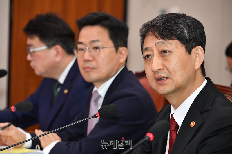 안덕근 산업통상자원부 장관이 11일 오전 국회에서 열린 산업통상자원중소벤처기업위원회 전체회의에 출석해 의원들의 질문에 답하고 있다.