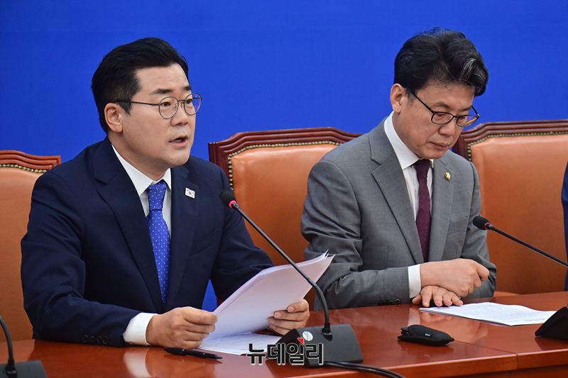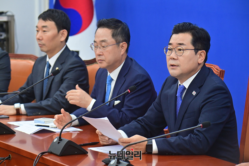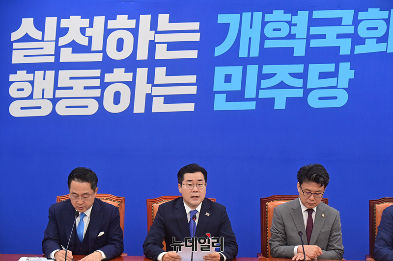 박찬대 더불어민주당 원내대표가 19일 오전 국회에서 열린 정책조정회의에서 모두발언을 하고 있다.