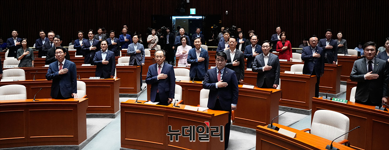 [포토] 국민의례하는 국민의힘