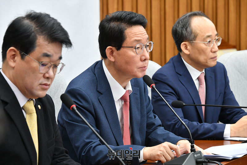 김상훈 국민의힘 정책위의장이 20일 오전 국회에서 열린 원내대책회의에서 모두발언을 하고 있다.