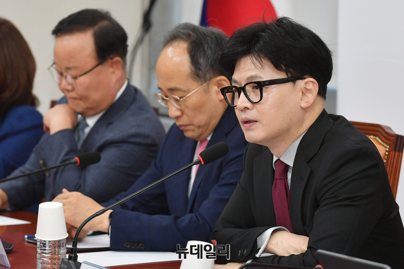 한동훈 국민의힘 대표가 23일 국회에서 열린 최고위원회의에서 모두발언을 하고 있다.